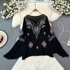 Блузки с вышивкой в богемном этническом стиле, блузка с расклешенными рукавами на шнуровке и круглым вырезом, летние топы для пляжного отдыха и отдыха