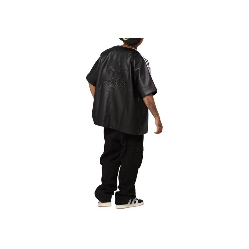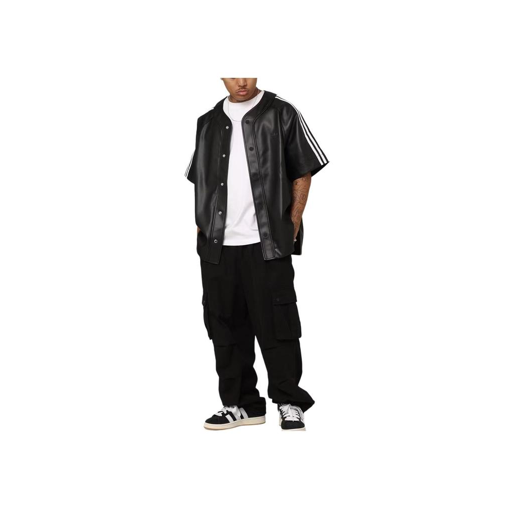 Adidas Оригинальная повседневная рубашка с круглым вырезом на пуговицах и короткими рукавами, мужские топы, черные IZ4048