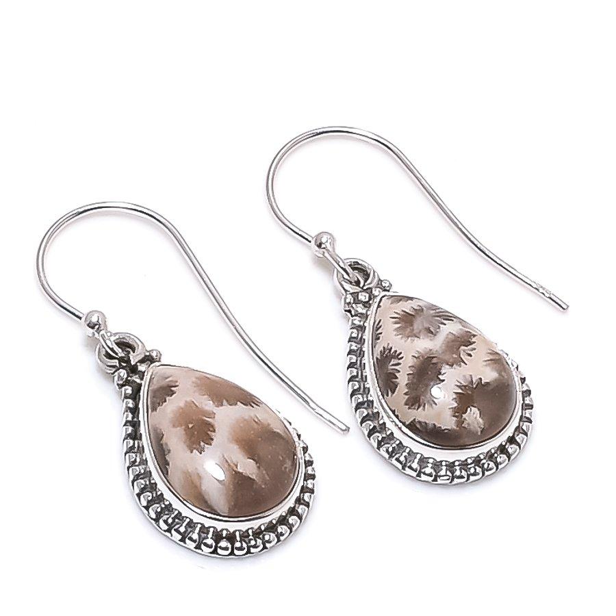 Натуральный ископаемый коралл драгоценный камень 925 пробы серебро подарок серьга 1,25" a2A74
