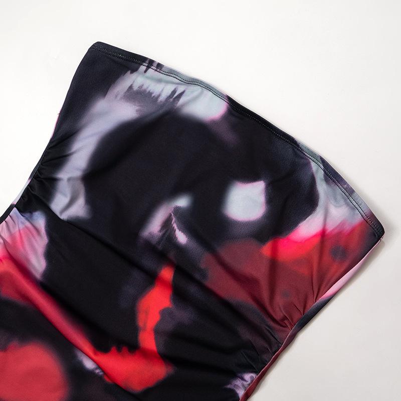 Женские весенние короткие платья-футляры с принтом и плиссированным пуловером на бедрах