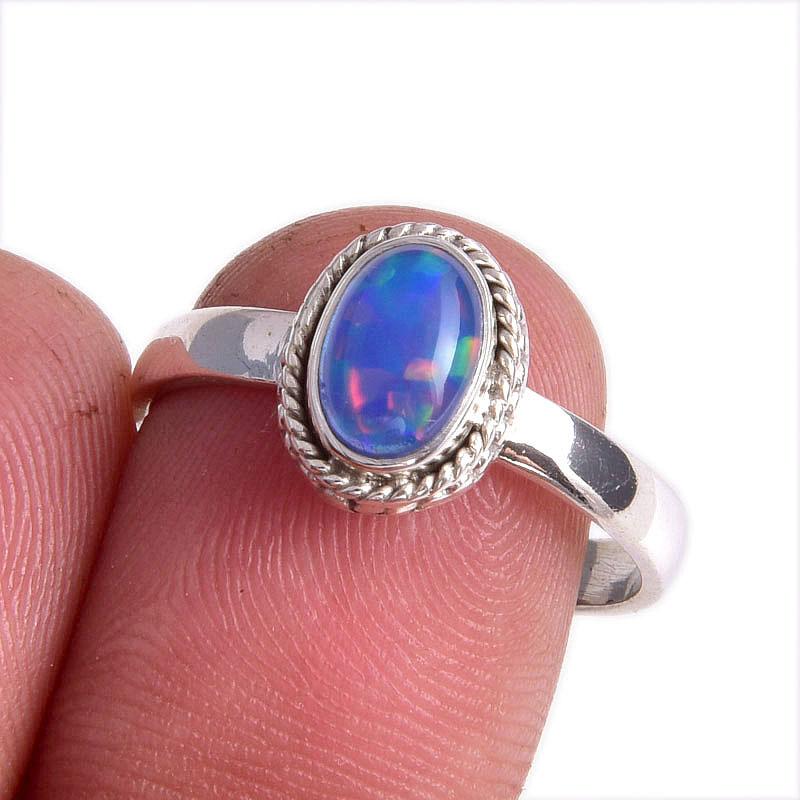 Кольцо ручной работы из чистого серебра 925 пробы с натуральным эфиопским опалом S.9 G6K88