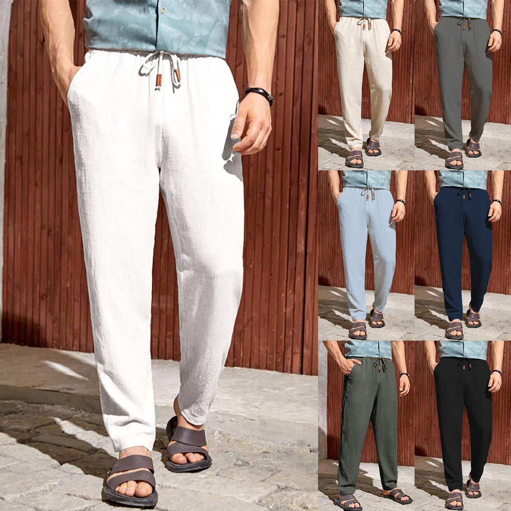 Новые европейские и американские мужские повседневные брюки из хлопка и льна с завязками
