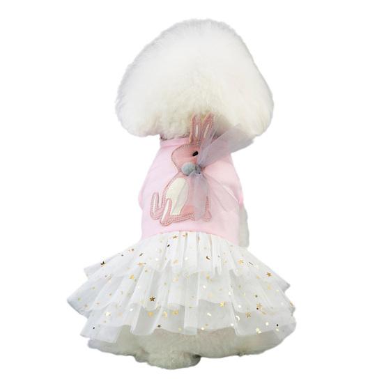 Платье для собаки характеризуется рисунком кролика и звездным украшением, что делает его модным и красивым.. А мягкие текстуры делают его удобным для ношения.