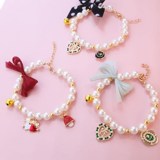 Разработанный с застежкой омара, этот ошейник для домашних животных может быть свободно отрегулирован в соответствии с фигурой вашего питомца; и он разработан с имитацией жемчуга, который может сделать вашего питомца более элегантным.