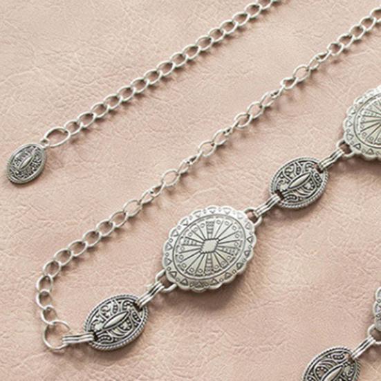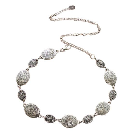 Прочная металлическая конструкция: Этот женский ремень-цепочка, изготовленный из высококачественного металла, обеспечивает прочность и практичность для длительного ношения.; Устойчивый к износу, он представляет собой надежный аксессуар для различных случаев.. Ключевые слова: Ремень-цепочка из металла, прочный, качественный материал.