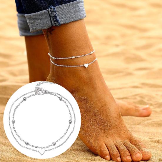 Женский ножной браслет, полая цепочка, регулируемый легкий зажим в форме сердца, двухслойное медное украшение на щиколотке, гальваническое покрытие — купить товар онлайн с бесплатной доставкой до всему миру!