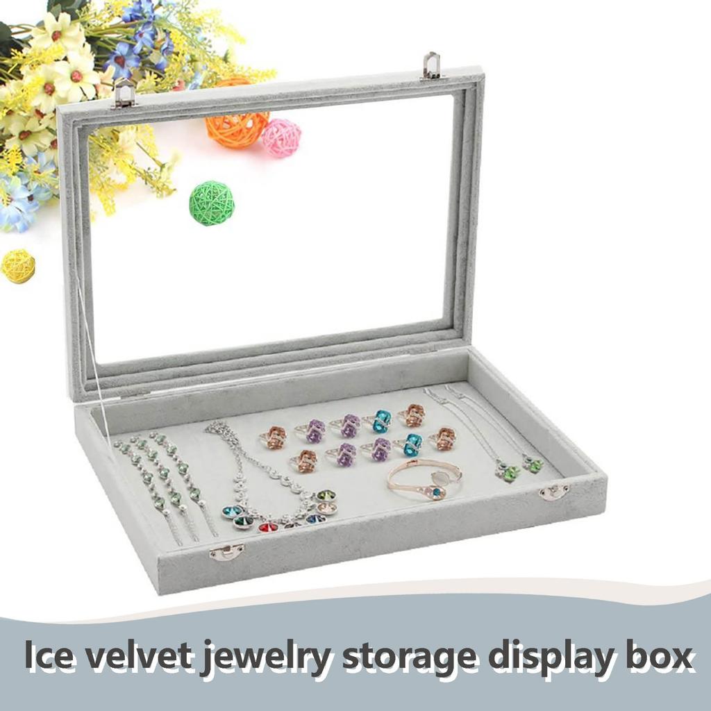 Ледяной бархат, прозрачная крышка, пустая коробка-органайзер для ювелирных изделий, футляр для хранения ожерелья