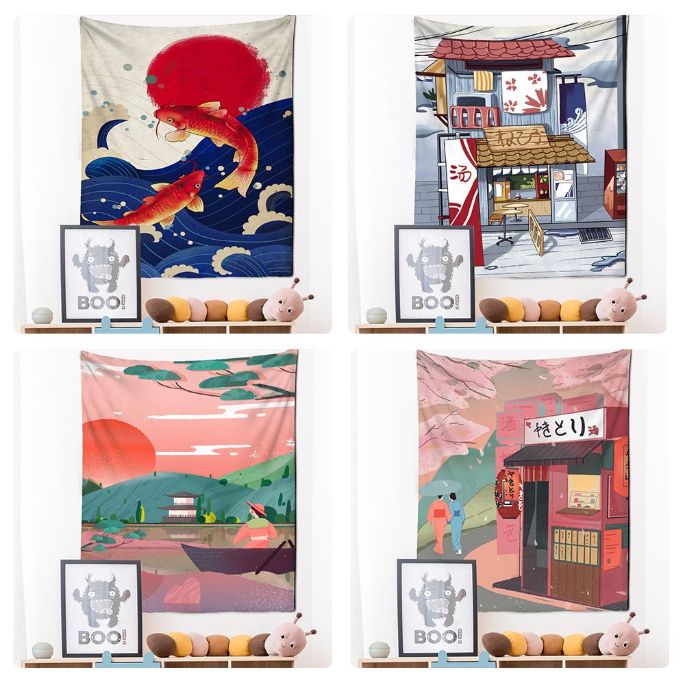 Японский гобелен с иллюстрацией, настенный Гобелен Канагава, волнистая печать, богемный хиппи, домашний декор для спальни