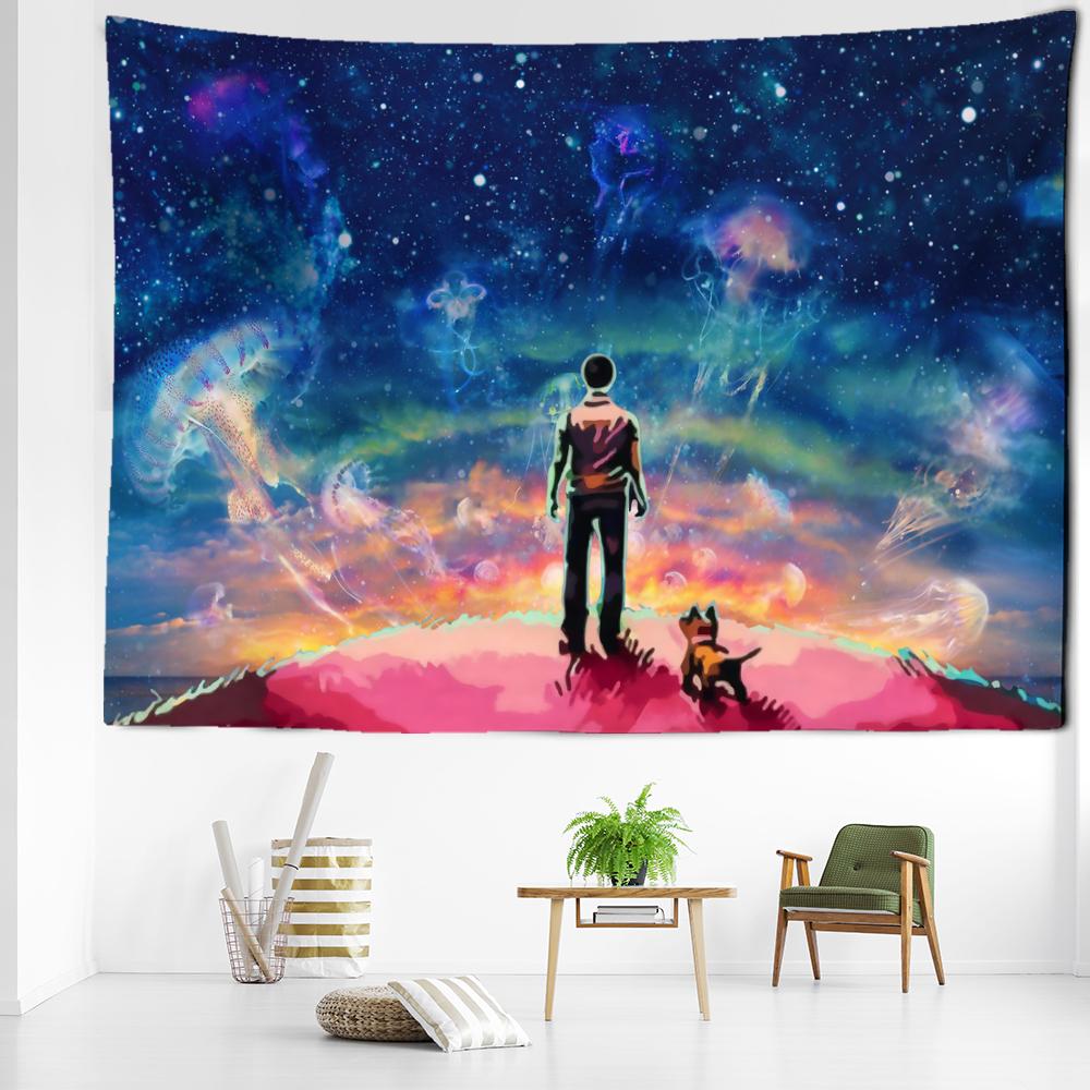 Мультфильм Звездное Небо Назад Тень Гобелен Настенный Висячий Таинственное Искусство Хиппи Тапиз Абстрактная Эстетика Комната Домашний Декор