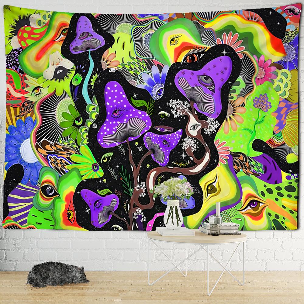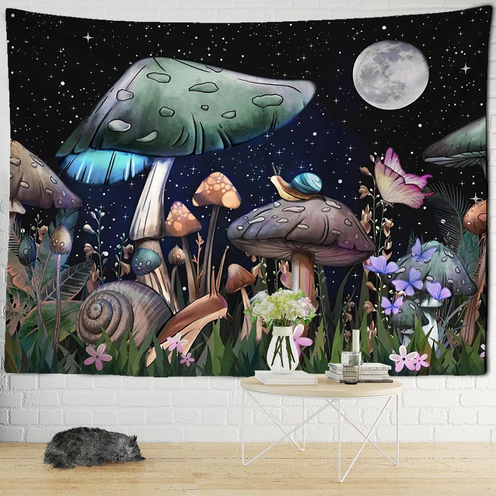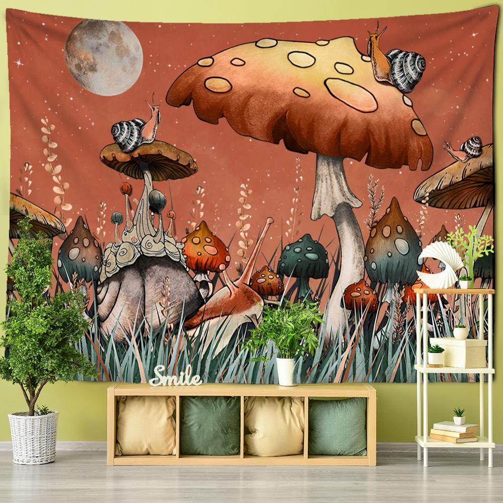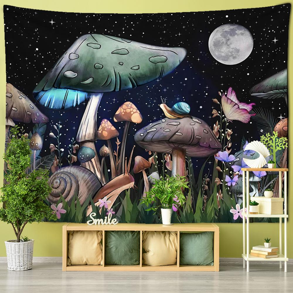 Психоделический грибной настенный гобелен Колдовство Мистическое ночное небо Аниме Луна Улитка Декор для дома и комнаты