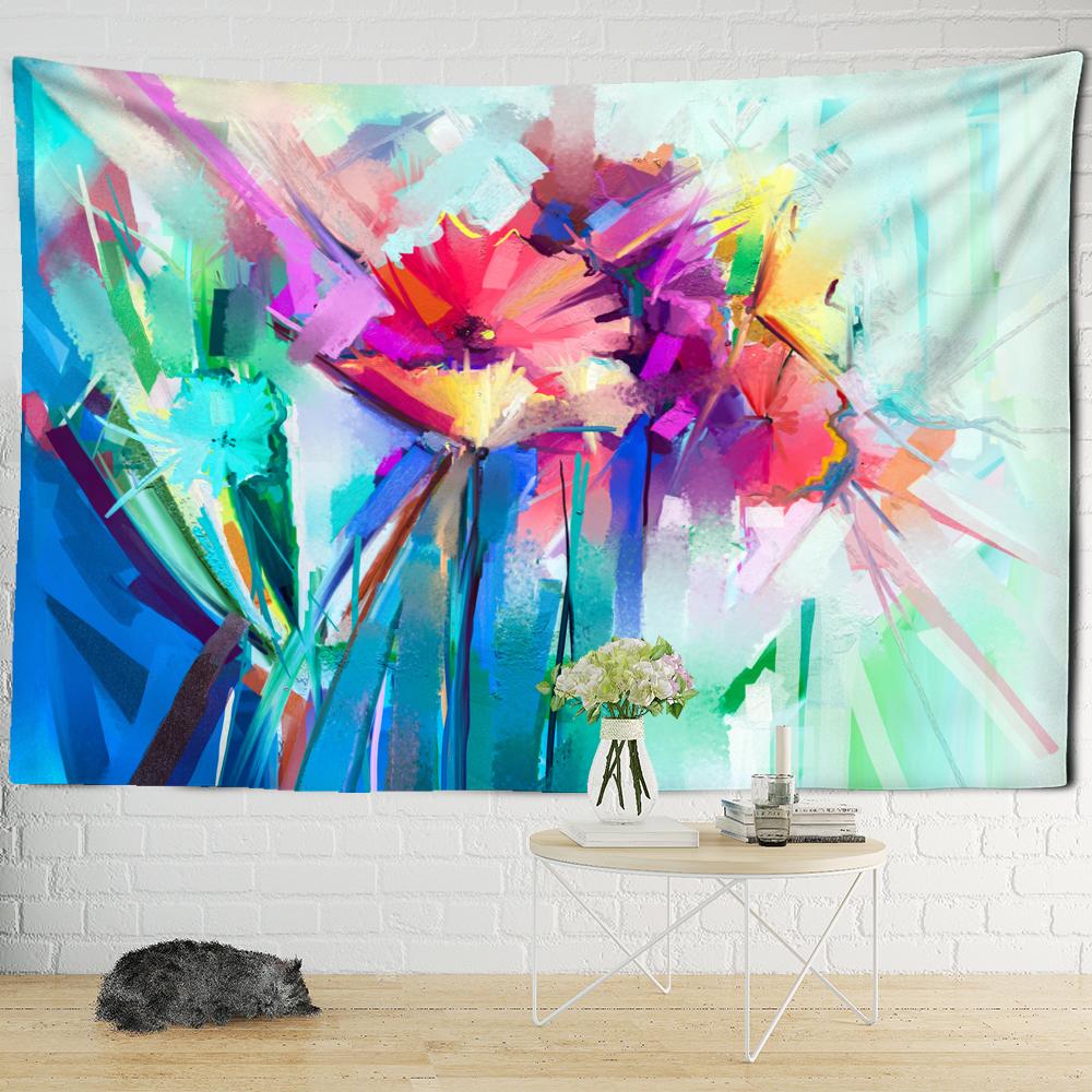 Голубой цветок Картина маслом Гобелен Настенный гобелен Хиппи Тапеция Простое искусство Гостиная Эстетический декор комнаты