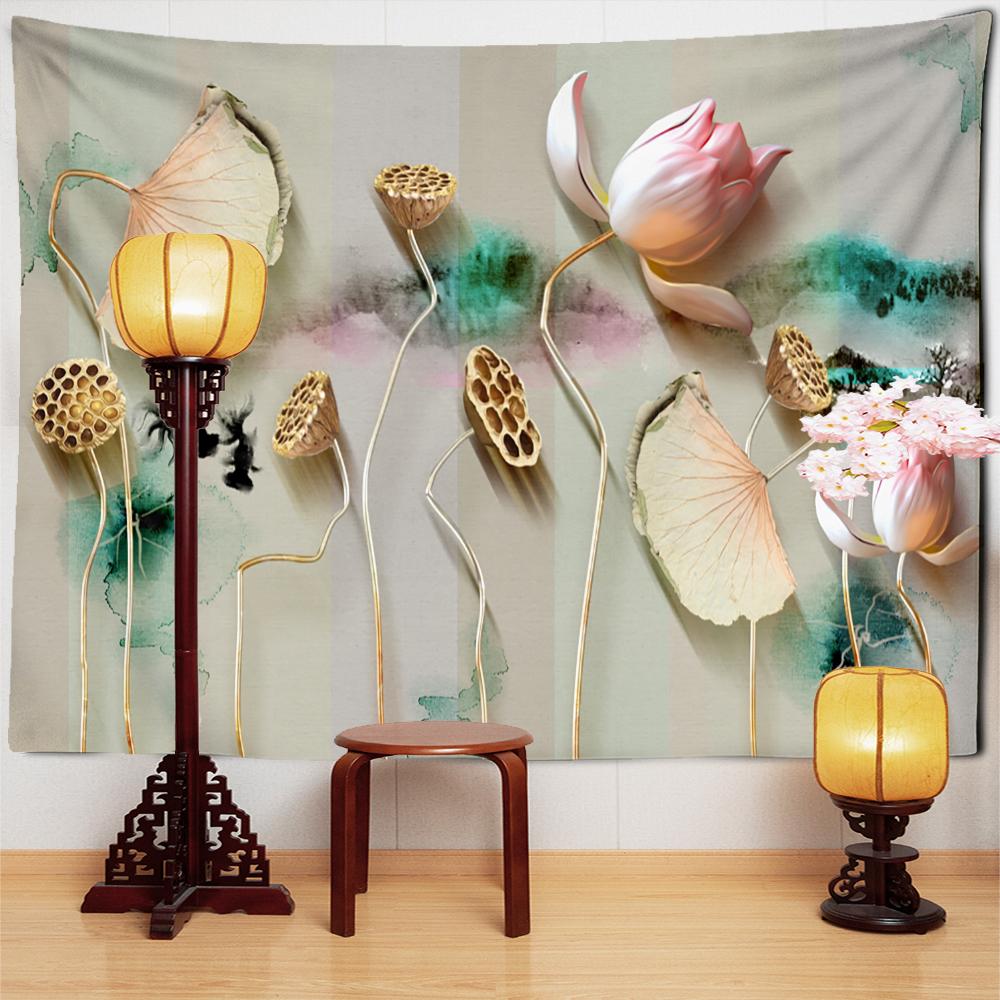 Мертвые листья лотоса кои гобелен настенный искусство природа растение хиппи тапиз домашний декор фон ткань
