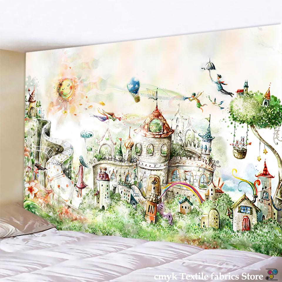 Сказочный Замок Гобелен Настенный Мультфильм Картина Маслом Фреска Богемный Хиппи Психоделический Матрас Домашний Декор Жизни