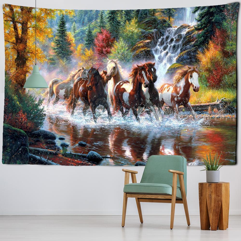 Гобелен «Шпора лошади галопом», настенный гобелен, китайская живопись тушью, хиппи, природа, богемный декор для общежития, студии