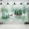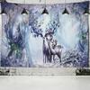 Красочный мультяшный гобелен с изображением лося и леса, настенный психоделический колдовство, хиппи, природный пейзаж, домашний декор, фоновая ткань