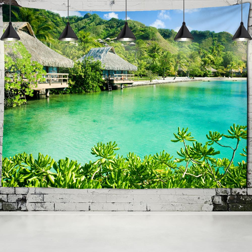 Пайн-Ривер-хижина, пейзажный гобелен, настенный психоделический хиппи, тапиз, художественный декор, фоновая ткань