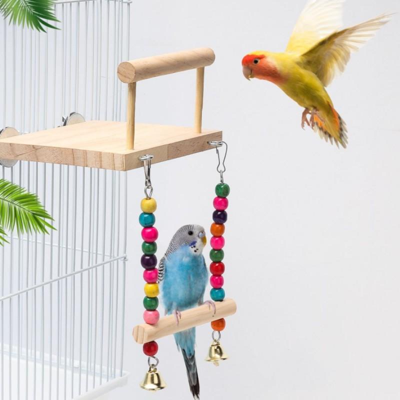 Игрушка-качалка для птиц, деревянная подставка для попугая, игровая площадка с жевательной клеткой из бисера, игровая площадка для волнистых попугаев