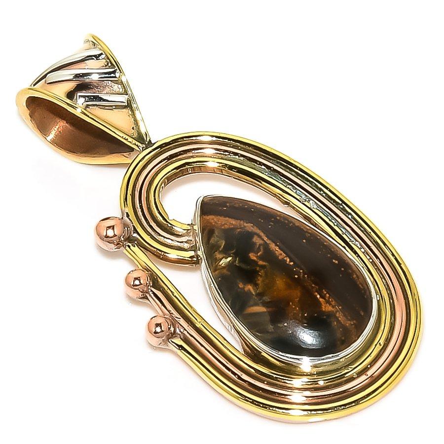 Натуральный драгоценный камень питерсит, двухцветный кулон из стерлингового серебра 925 пробы, 1,75 дюйма, h3w05