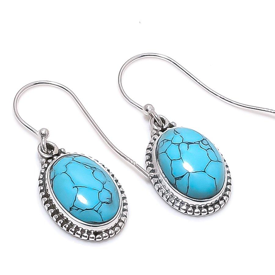 Серьги ручной работы из чистого серебра 925 пробы с натуральным бирюзовым камнем 1,25 дюйма W6S86