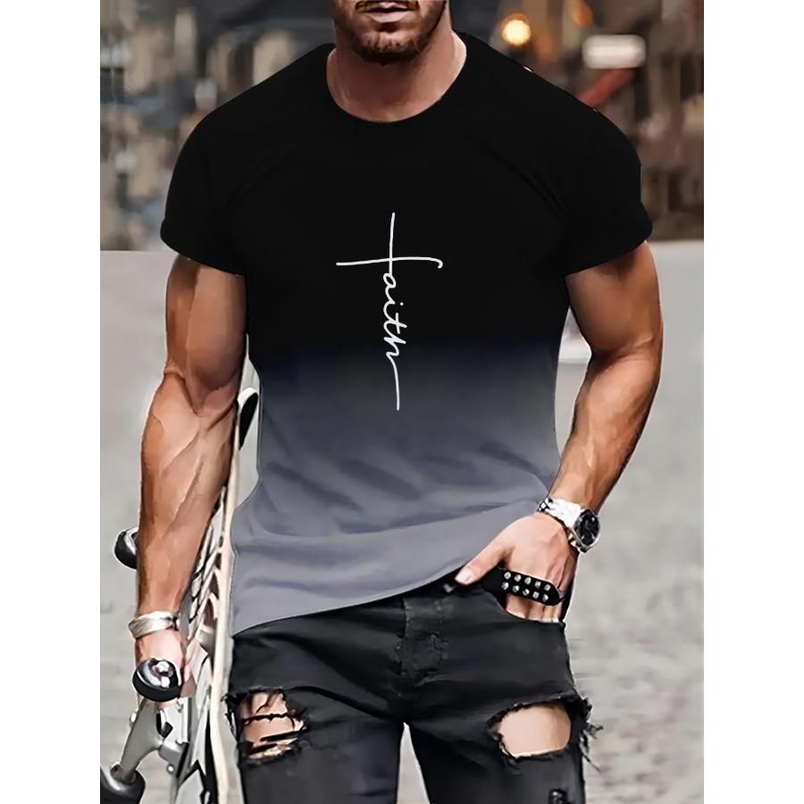 Футболки с буквенным узором, футболка с градиентным 3D принтом, модные топы с круглым вырезом и короткими рукавами, летние дышащие мужские футболки, мужская одежда с героями мультфильмов