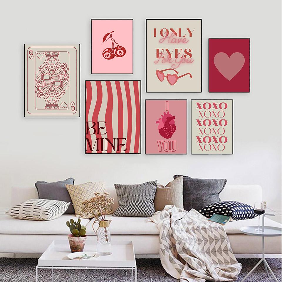 День святого Валентина Пара Любовь Плакат Розовая серия Фреска Любовь Вишневый алфавит Современная печать Гостиная Спальня Украшения Плакат