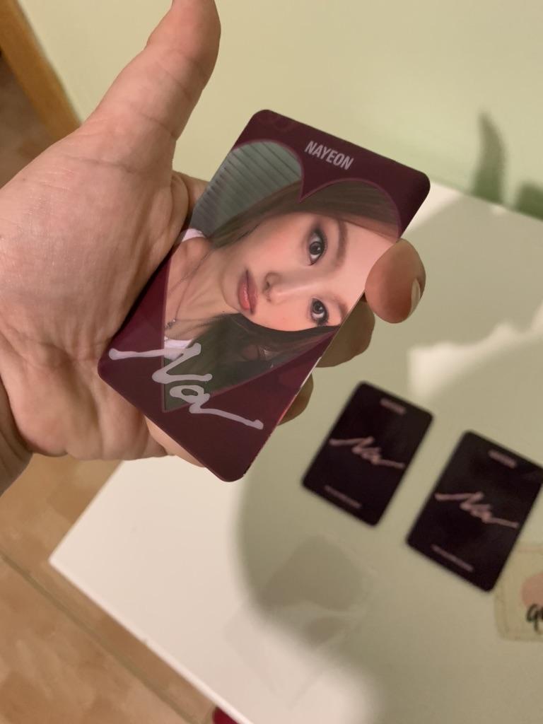 Альбомы шли чуть меньше месяца в чел обл, в упакованы в слой пупырки, небольшой дф на коробке, а так все в порядке, стэньте Наен 🩵 в подарок положили 4 протектора и 3 неоф карты, спасибо