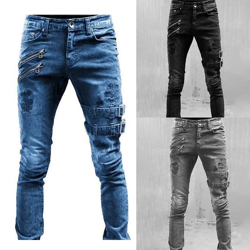 Ретро мото байкерские прямые эластичные джинсы мужские уличная одежда на молнии в стиле панк узкие джинсовые брюки-карго Pantalones Hombre Y2K одежда