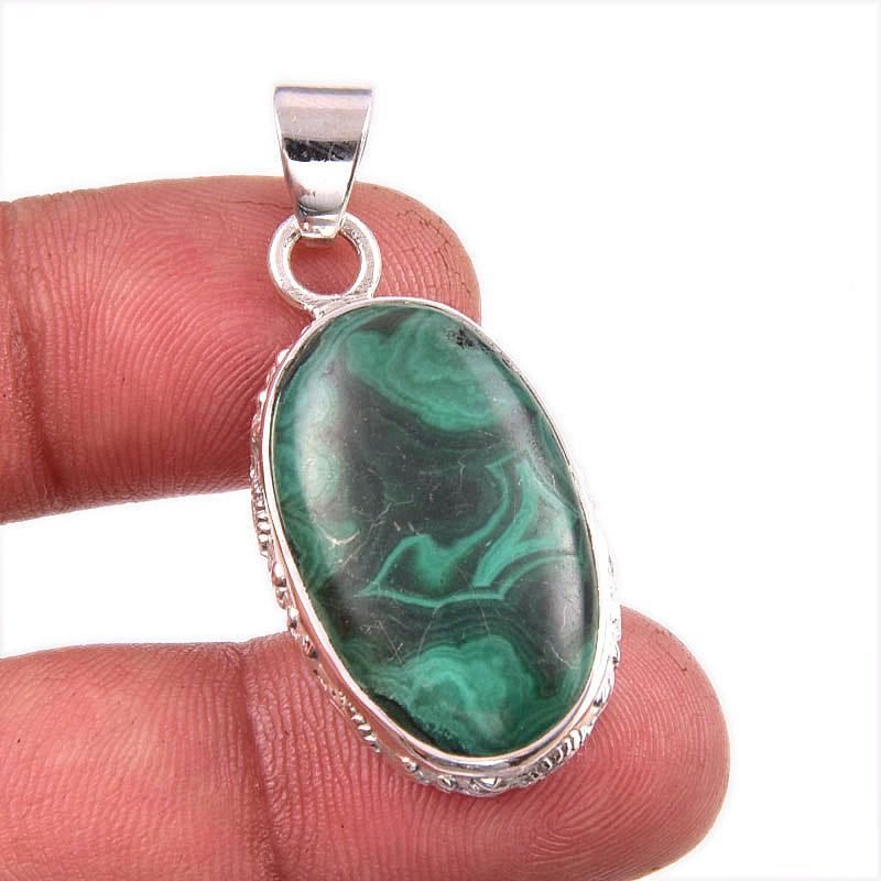 Подвеска из чистого серебра 925 пробы с натуральным малахитом ручной работы 1,5 дюйма c1p86 — купить товар онлайн с бесплатной доставкой по всему миру!