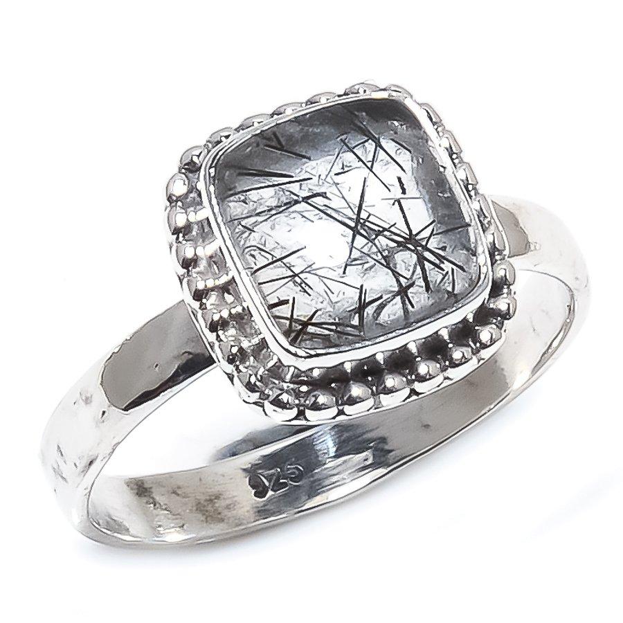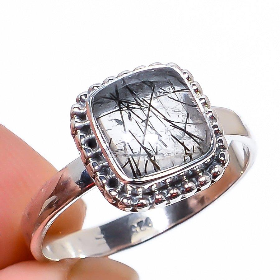 Ювелирное кольцо ручной работы из стерлингового серебра 925 пробы с натуральным черным рутилом S.9 f5D53