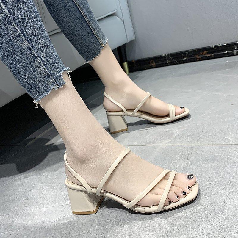 Тапочки на высоком каблуке, женские пикантные сандалии, женские летние тапочки на квадратном каблуке, женские шлепанцы с завязками на открытом воздухе, модные женские сандалии