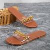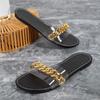 Женские тапочки, летние новые модные нескользящие износостойкие модные женские пляжные тапочки на плоской подошве с металлической цепочкой