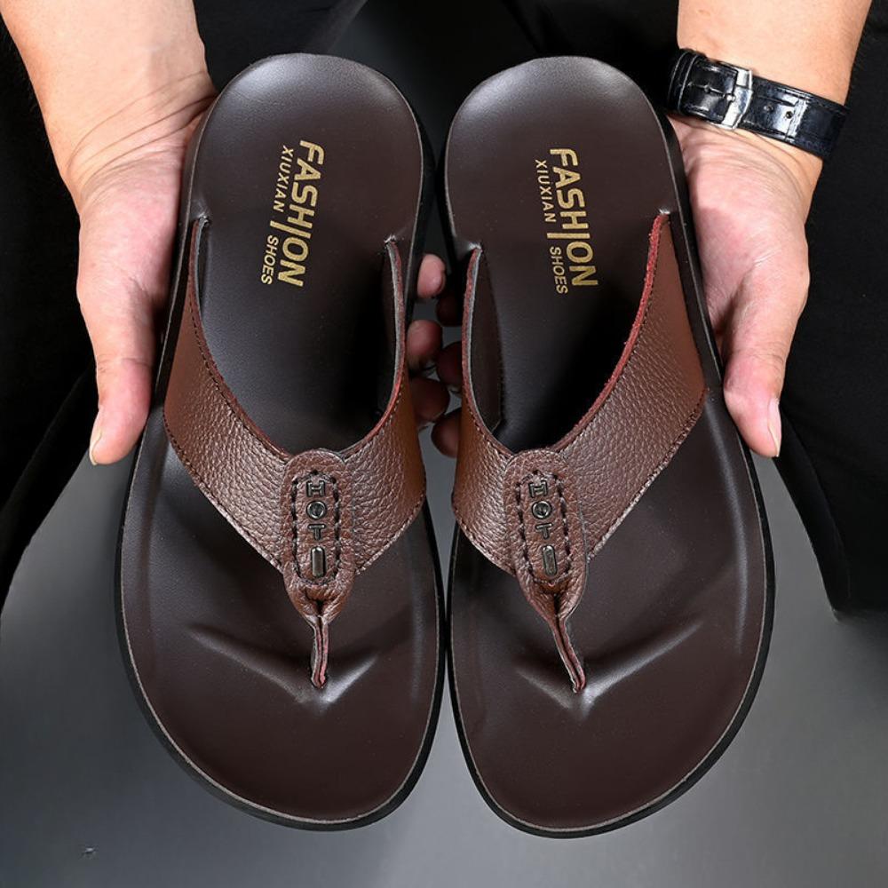 Летние сандалии, мужские шлепанцы, повседневная пляжная обувь, дышащие домашние нескользящие тапочки из натуральной кожи — купить товар онлайн с бесплатной доставкой по всему миру!
