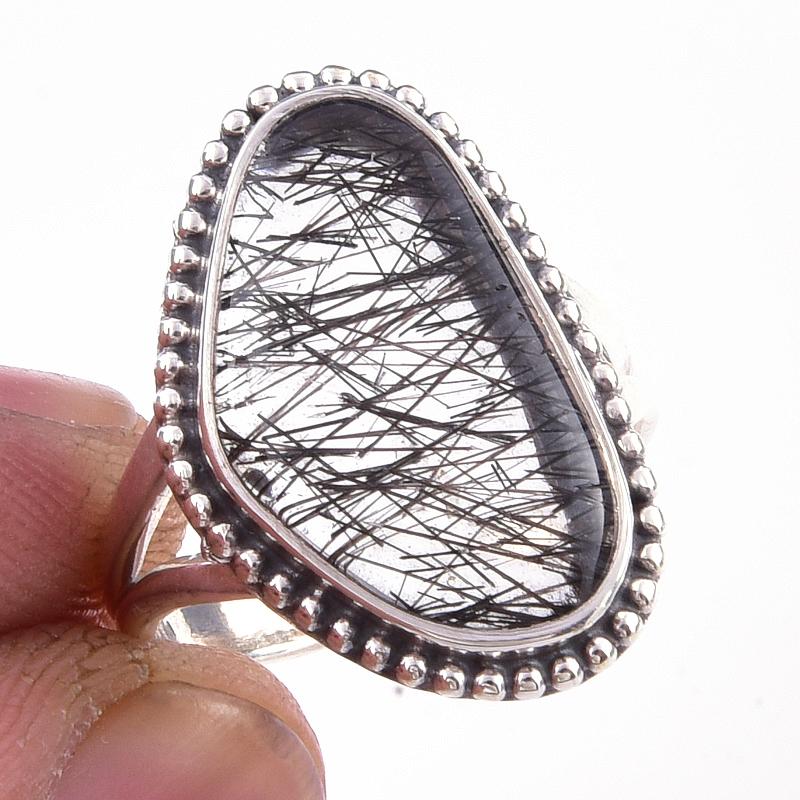 Кольцо из чистого серебра 925 пробы с натуральным черным рутилом ручной работы S.6 t8d67