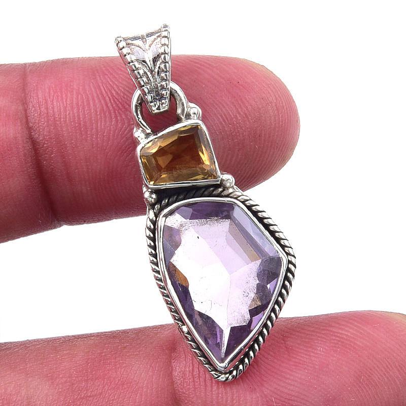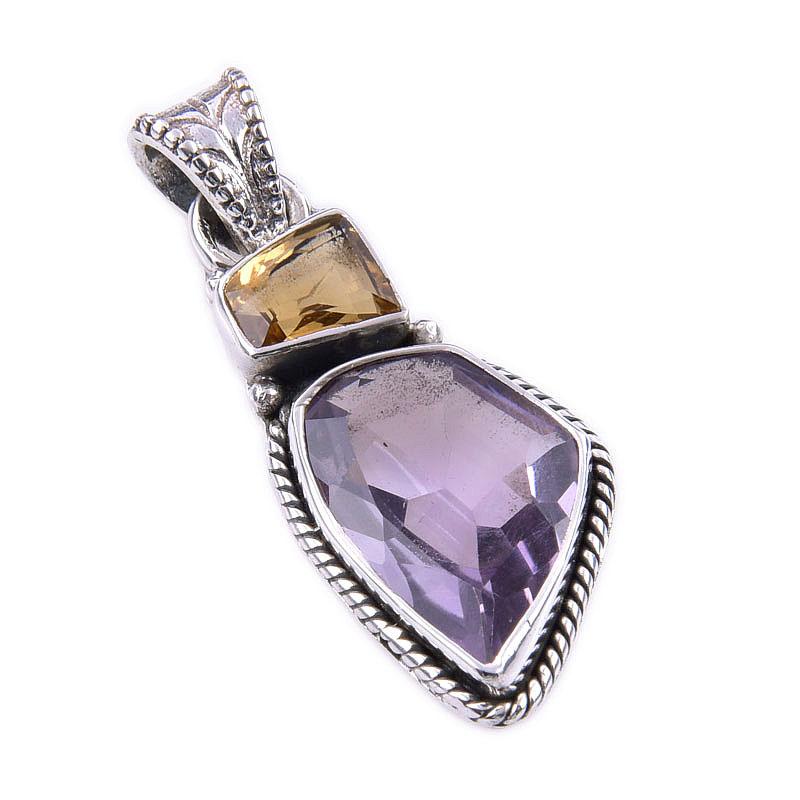 Подвеска из натурального розового аметиста и цитрина из стерлингового серебра 925 пробы 1,50'' S2O51