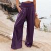 Летние хлопковые льняные широкие брюки, женские свободные брюки-палаццо, повседневные брюки с карманами и эластичной резинкой на талии, пуговицы
