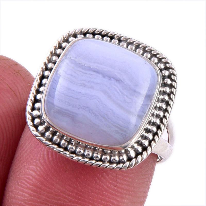 Кольцо из натурального голубого кружевного агата, чистое серебро 925 пробы, размер 6,5 h5G12