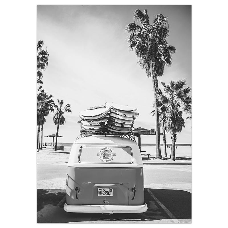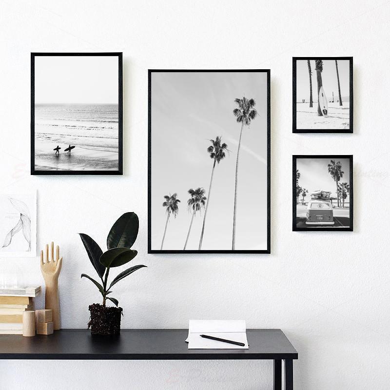 Черно-белый стиль, настенное искусство, пляжный серфинг, постер с пальмами, холст, живопись, современные картины, декор для гостиной, украшение дома