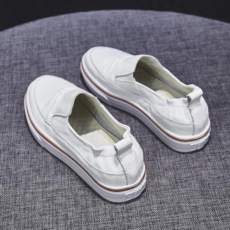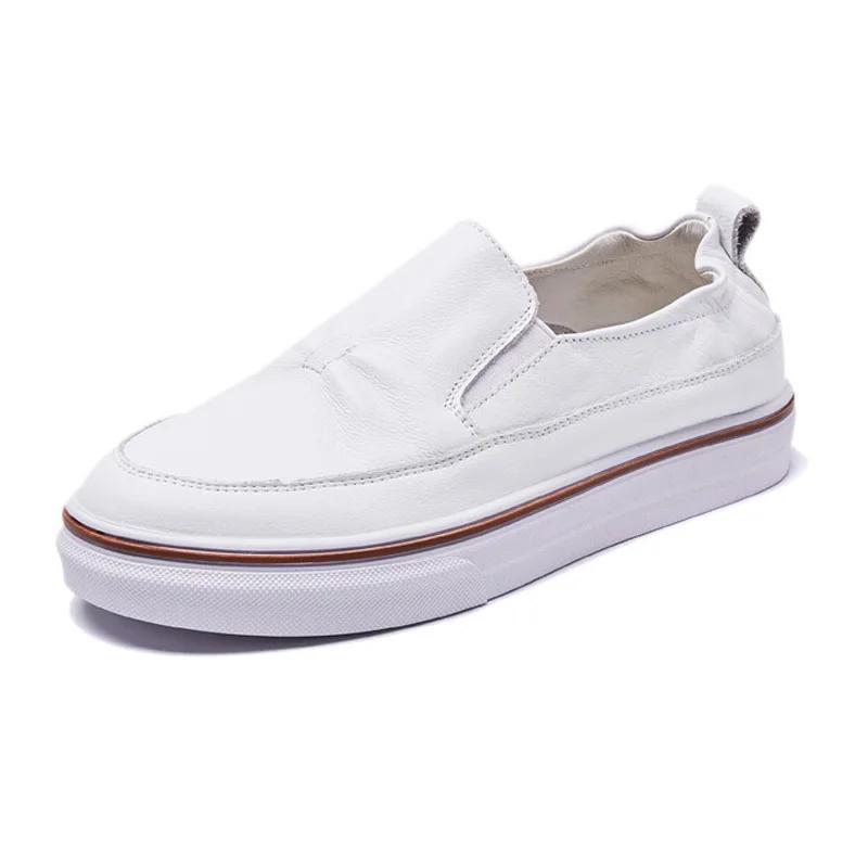 Модные женские туфли из натуральной кожи Весенне-осенние повседневные женские белые туфли Коровья кожа На плоской подошве Женские слипоны