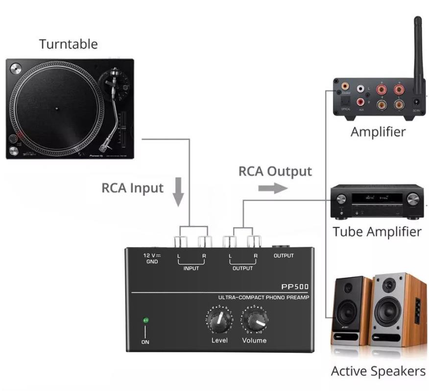 PP500 Ультракомпактный предусилитель Phono Preamp с регулировкой громкости Входной выход RCA 1/4-дюймовый выходной интерфейс TRS для винилового проигрывателя LP