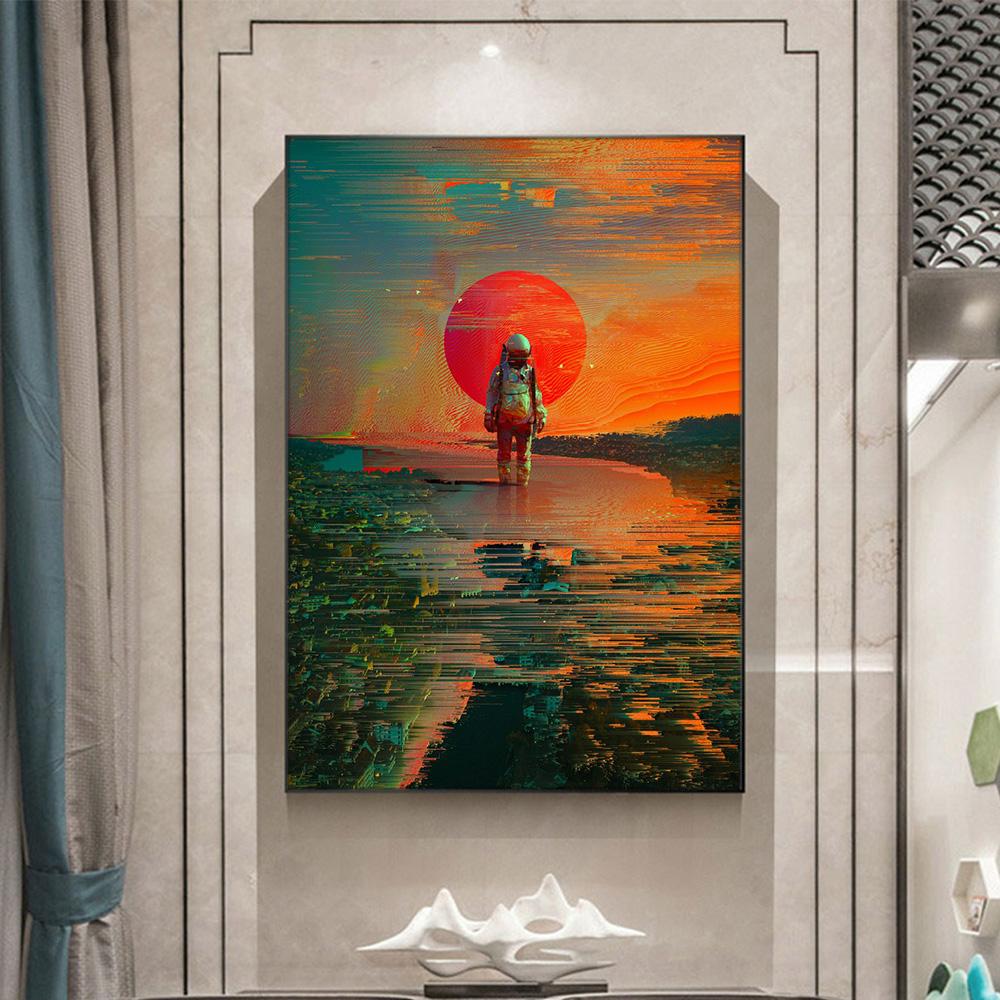 Неоновый космонавт в космосе, дикое пламя, фэнтезийный пейзаж, холст, картины, настенные художественные постеры и принты, домашний декор для гостиной, картина