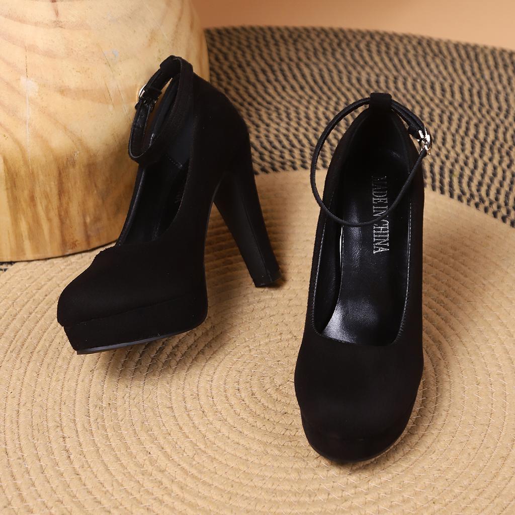 Черные бархатные непромокаемые туфли на высоком каблуке с круглой головкой, модная женская обувь на платформе с пряжкой, черная пикантная женская обувь, большой размер 42, 2023
