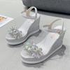 Женские летние сандалии, сандалии на платформе, босоножки на танкетке с открытым носком, модная обувь 2024, сандалии со стразами и цветами, 10 см