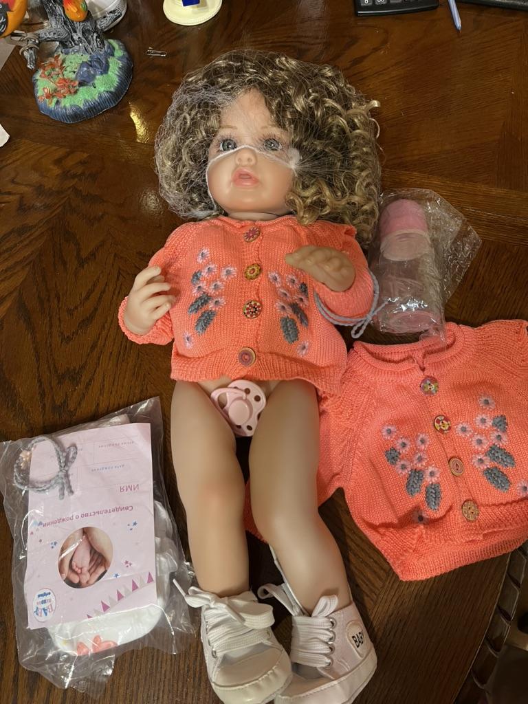 Распаковка будет дома! Очень красивая куколка! Вместе с куклой пришли: свидетельство о рождении, памперс, бутылочка, соска магнитная и обувь! (А также ещё 5 товаров, которые я изначально не нашла в посылке 😃)! Продавец хорошо упаковал, все целое, благодарю Джум! Покупала в подарок за1706₽ и 83₽ баллами по скидке, с опаской ожидала прибытия, боялась обнаружить брак. Хорошая кукла Реборн! Красивые акриловые глаза. Тело полностью силиконовое, мягкое. Куклу можно купать. Благодарю всех причастных!
