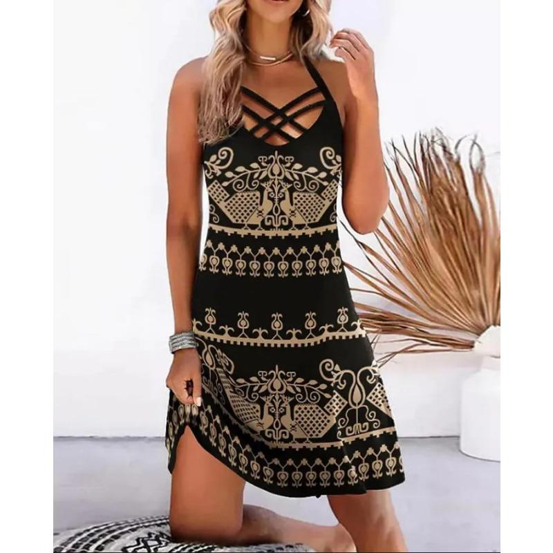 Женское платье трапециевидной формы, летние винтажные платья без рукавов с висячим вырезом и открытой спиной