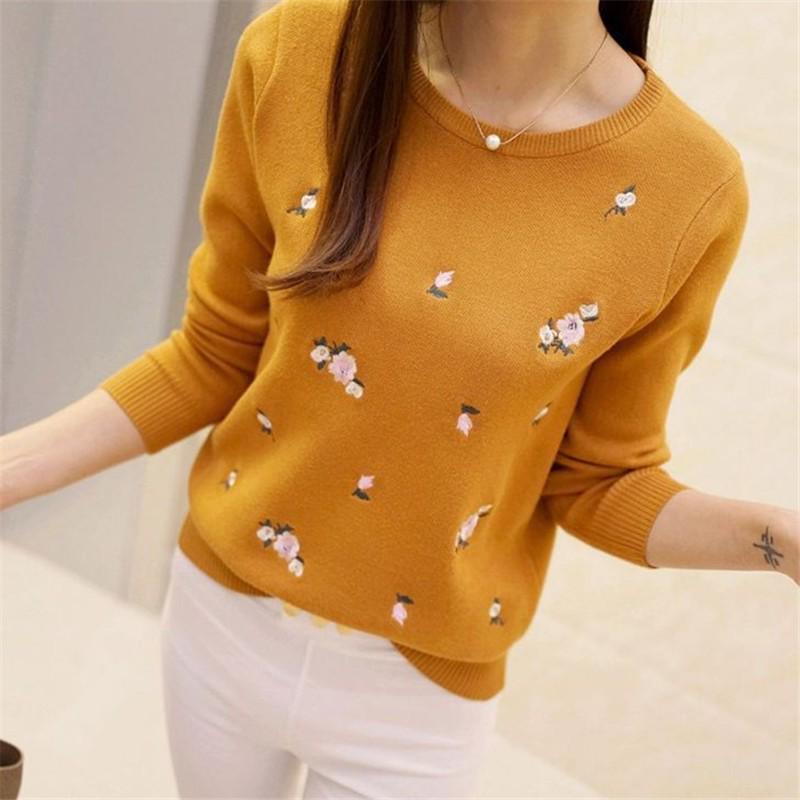 Зимние свитера женские вышивка женский пуловер женский осенний эластичный трикотажный джемпер шерстяные топы