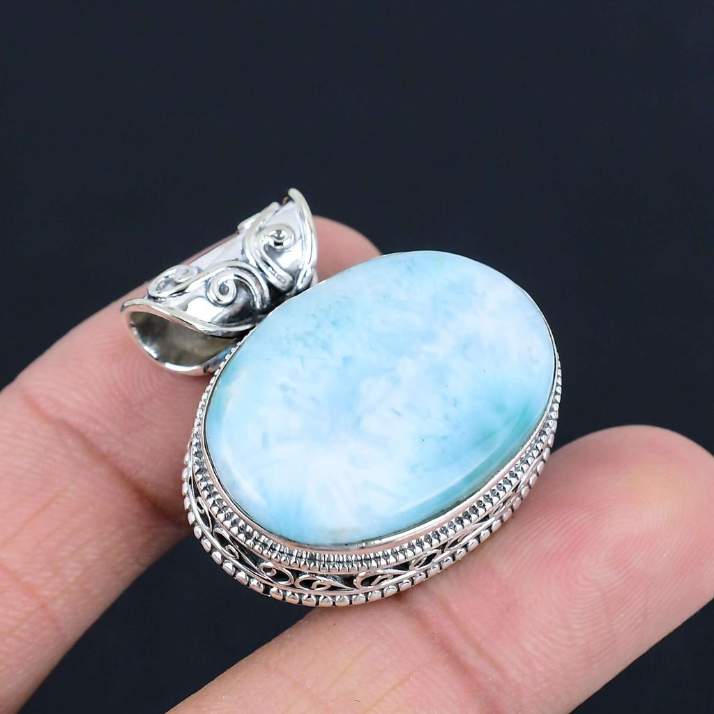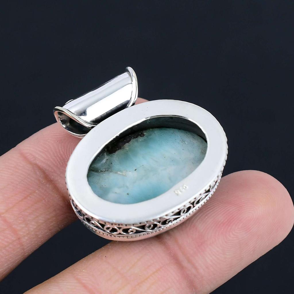 Подвеска из драгоценного камня Ларимар, твердая подвеска из стерлингового серебра 925 пробы, ювелирный подарок для унисекс