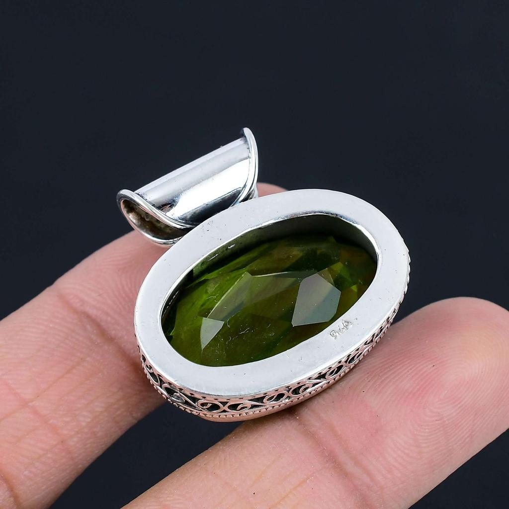 Подвеска из драгоценного камня перидот, твердая подвеска из стерлингового серебра 925 пробы, ювелирный подарок для унисекс