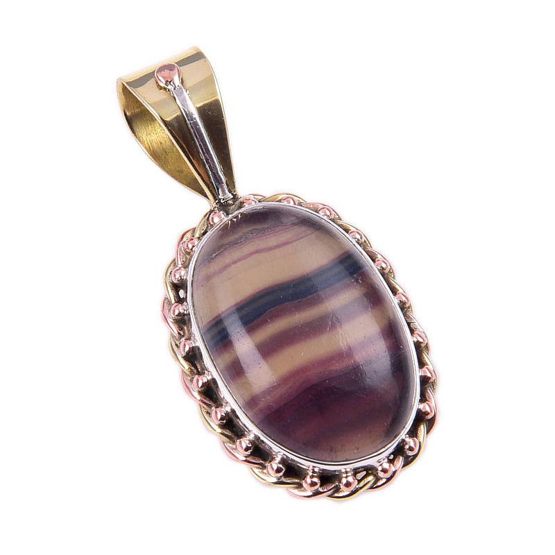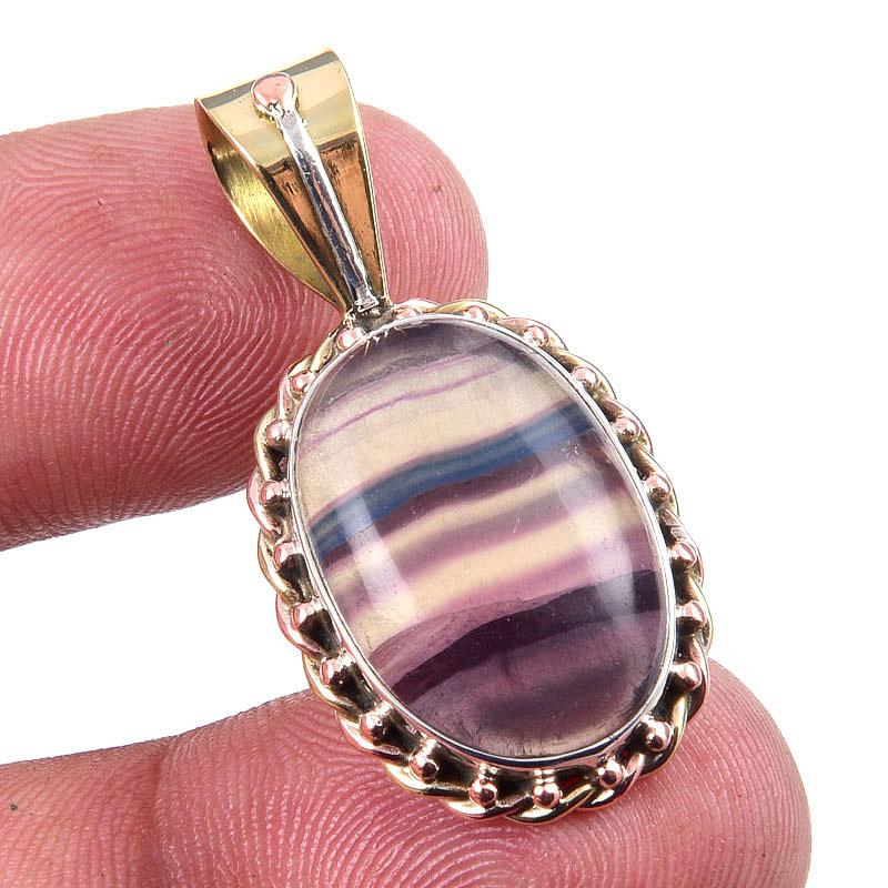 Натуральный флюорит, драгоценный камень, 925 проба, стерлинговое серебро, двухцветный кулон 3,50'' B9D14