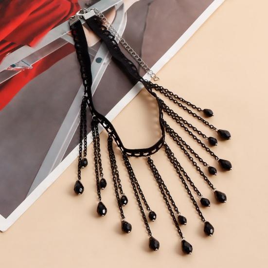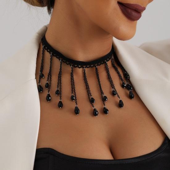Подчеркните свой стиль с помощью этого изысканного колье с удлиненной цепочкой для комфортного ношения.. Созданная с точностью, каждая деталь этого легкого предмета доведена до совершенства, чтобы обеспечить потрясающий вид.. Изысканный дизайн устойчив к выцветанию, что делает его долговечным аксессуаром.. Охватите европейские и американские ювелирные тенденции с этим колье с кисточкой из французского черного кристалла в готическом стиле.. Эта изысканная и элегантная вещь, созданная специально для женщин и девочек.. Это привлекательное колье идеально подходит для подарка, удивите свою жену или девушку в особых случаях, таких как День святого Валентина, дни рождения или юбилеи, с помощью этого привлекательного ожерелья.