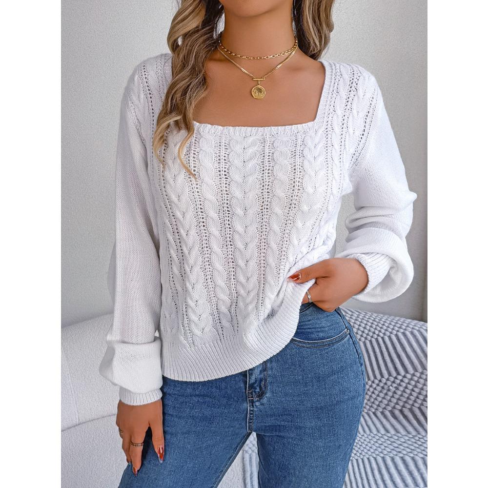Осенне-зимний повседневный пуловер с квадратным вырезом и рукавами-фонариками, свитер — купить товар онлайн с бесплатной доставкой по всему миру!